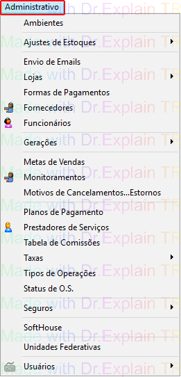 No módulo ADMINISTRATIVO, é possível realizar muitos dos cadastros necessários para utilização dos mesmos nas várias telas e com as inúmeras operações disponíveis no Sistema Retaguarda.