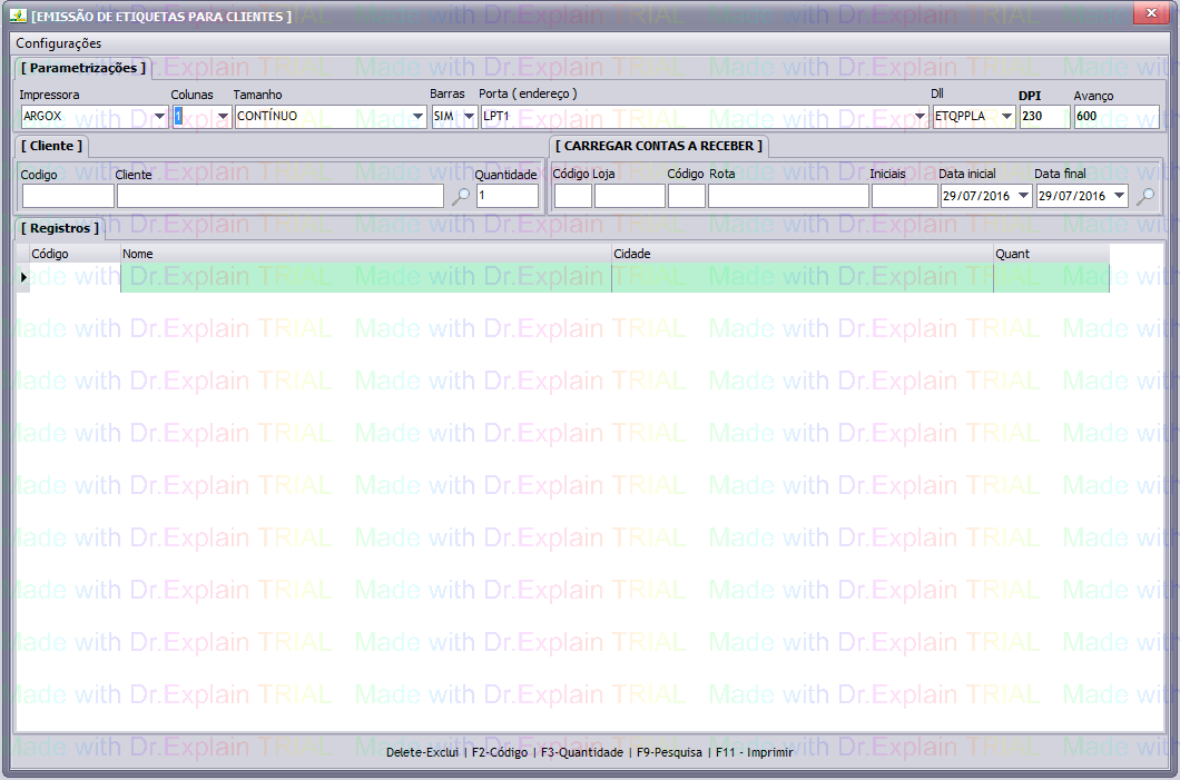 Esta tela usará a mesma configuração e a mesma impressora usada e configurada para imprimir as Etiquetas de Produtos.
