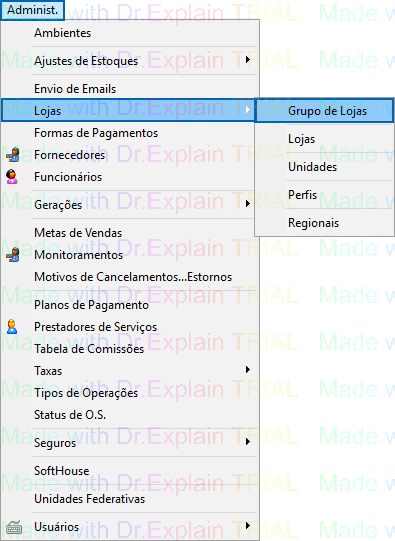 AIMCA - Menu Administrativo com acesso ao Grupo de Lojas.