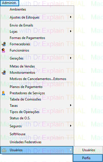 *Ver nas imagens, Administrativo - Usuários - Perfis e Usuários - [Perfis Módulos do Sistema].