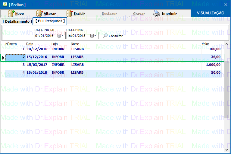 *Ver na imagem Caixas - [Recibos] - Detalhamento.